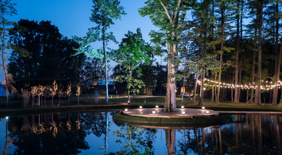 広大な自然に囲まれた池の中央に設けられたソネカのプレミアムダイニング。水辺に映る木々や空が幻想的な雰囲気を演出し非日常の特別な食体験をお楽しみいただけます。自然の美しさと調和したこの特別な空間で旬の食材を使った料理を堪能し心に残るひとときをお過ごしください。要予約となります。